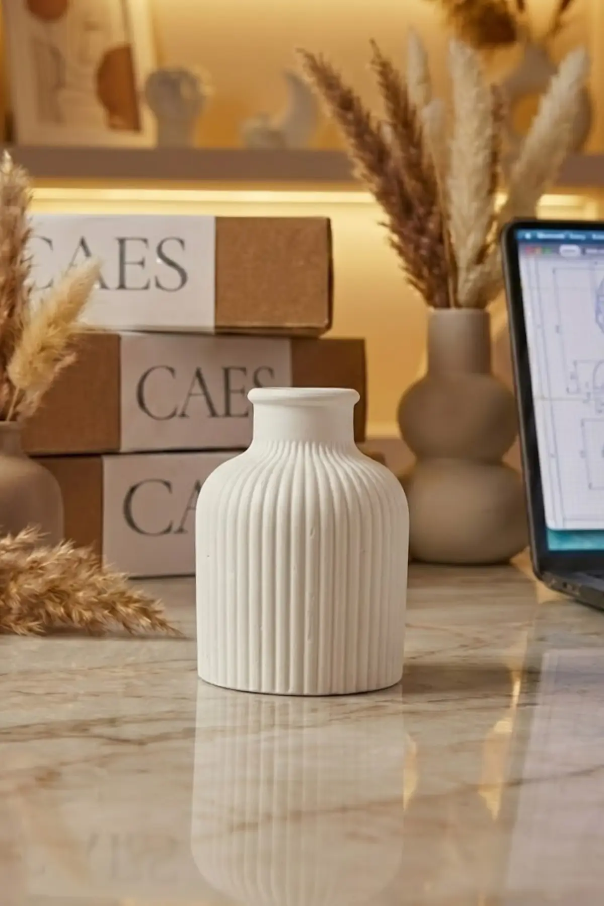 - Doku: Büst pürüzsüz yüzey detaylarına, vazo ise modern dikey oluklu (ribbed) bir dokuya sahiptir. Kuru çiçek ve yapay bitki kullanımı için uygundur, içine su konulması önerilmez). Kabarcıklar olabilir.