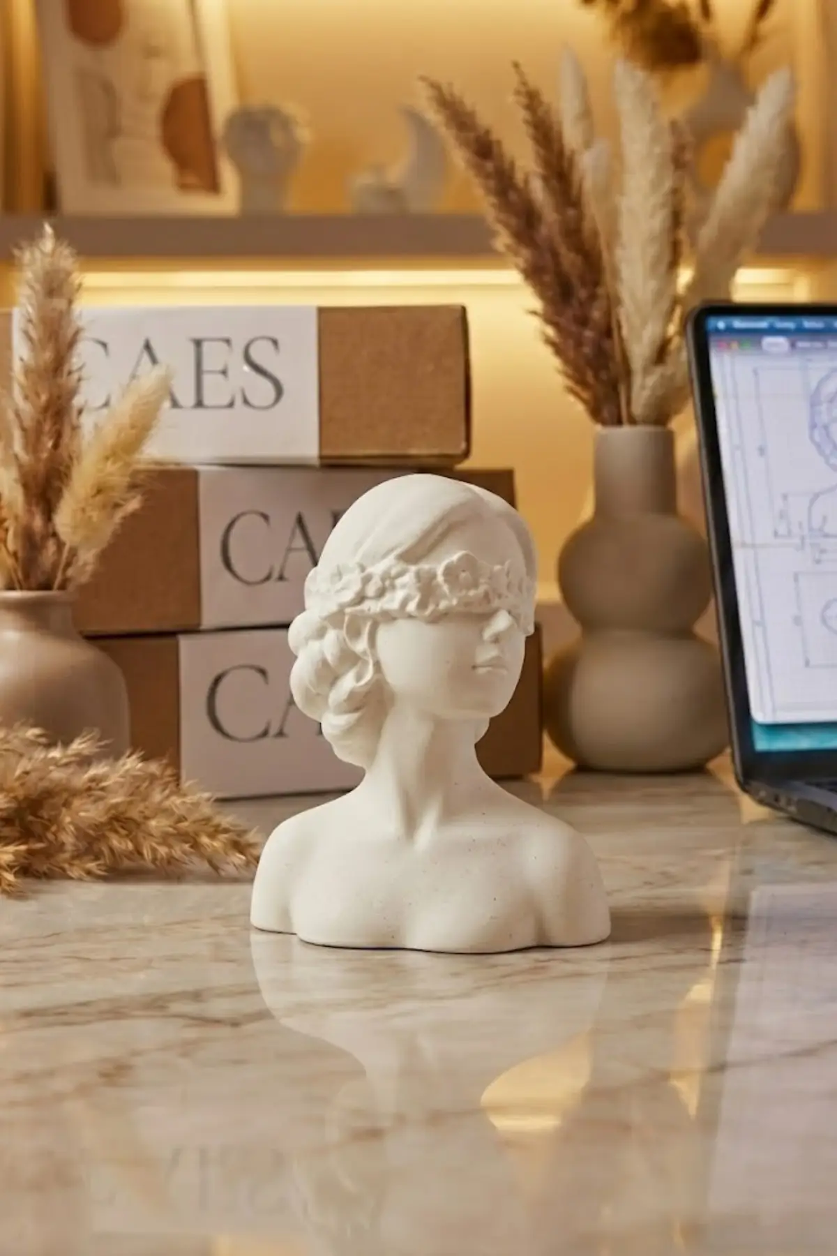 Heykel Büst ve Botanik Vazo Koleksiyonu Seti - Antik Esinti - 2 Ürün