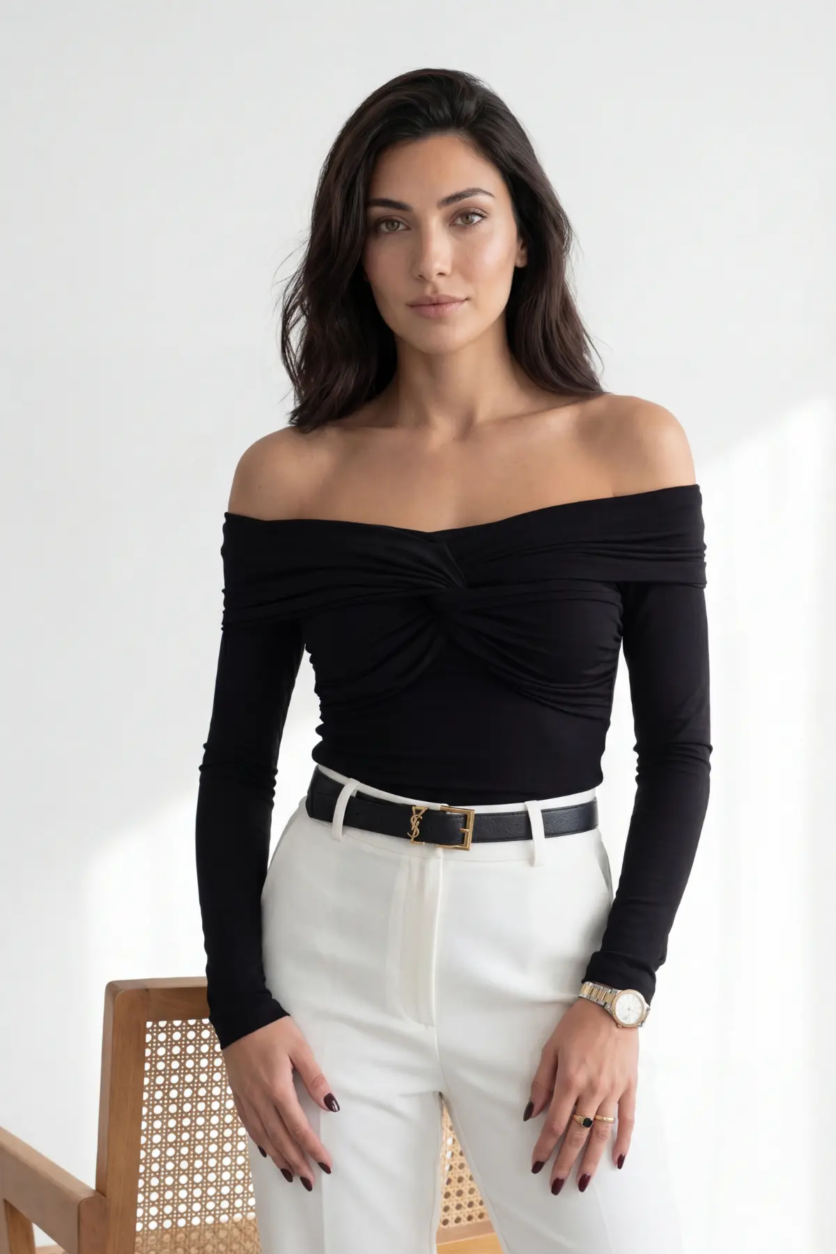 Omzu Açık Siyah Bluz Uzun Kollu